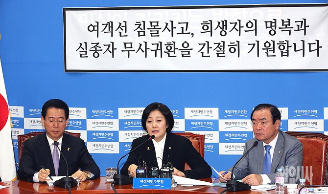 12일, 새정치민주연합 박영선 원내대표가 서울 여의도 국회에서 열린 세월호 관련 원내대책회의에서 발언하고 있다.