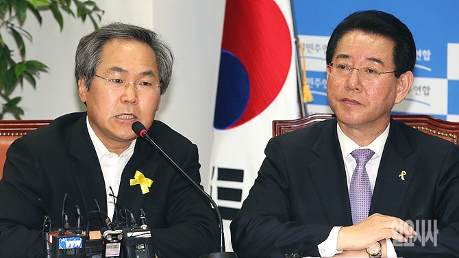 12일, 새정치민주연합 우윤근 의원(세월호특별법 준비위원회 위원장)이 서울 여의도 국회에서 열린 6·4지방선거 정책공약집 기자간담회에서 발언하고 있다.