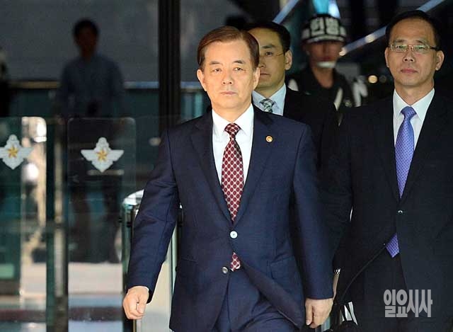 한민구 국방부 장관이 10일 서울 용산구 합참 청사에서 열린 '긴급 전군주요지휘관 화상회의'에 참석하기 위해 국방부 청사를 나서고 있다.