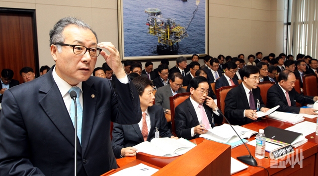 한정화 중소기업청장이 10일 서울 여의도 국회에서 열린 산업통상자원위원회의 국정감사에서 업무보고를 하고 있다.