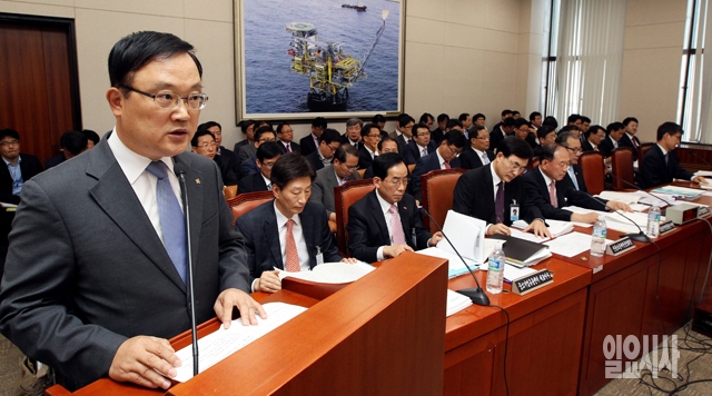 박철규 중소기업진흥공단 이사장이 10일 서울 여의도 국회에서 열린 산업통상자원위원회의 국정감사에서 업무보고를 하고 있다.