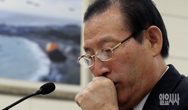박창명 병무청장이 10일 서울 여의도 국회에서 열린 국방위원회의 병무청 국정감사에서 헛기침을 하고 있다.