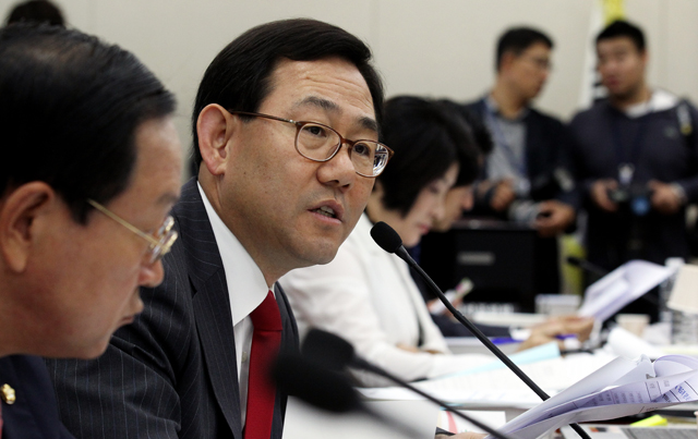 새누리당 주호영 정책위의장이 10일 서울 여의도 국회에서 열린 국방위원회의 병무청 국정감사에서 박창명 병무청장에게 질의를 하고 있다.