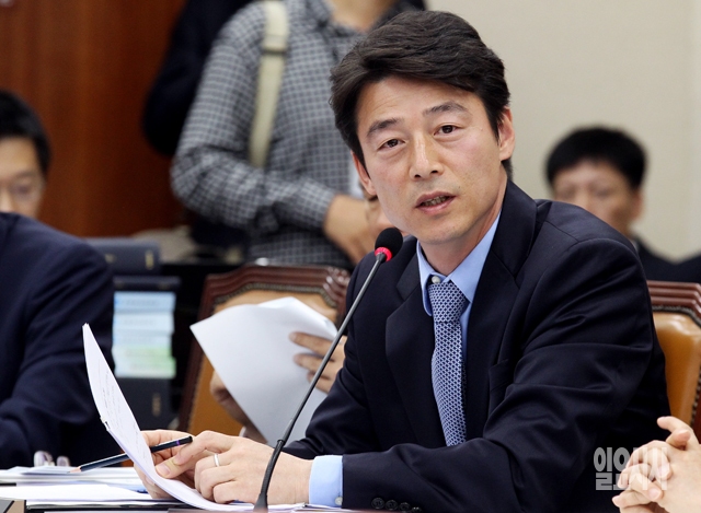 새정치민주연합 송호창 의원이 13일 서울 여의도 국회에서 열린 미래창조과학방송통신위원회의 국정감사에서 최양희 미래창조과학부장관에게 질의를 하고 있다.