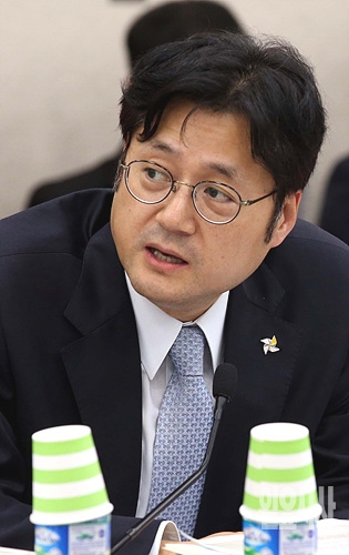 13일, 서울 여의도 국회 산업자원통상부 회의실에서 열린 2014 산자부 국정감사에서 홍익표 새정치민주연합 의원이 질의하고 있다.