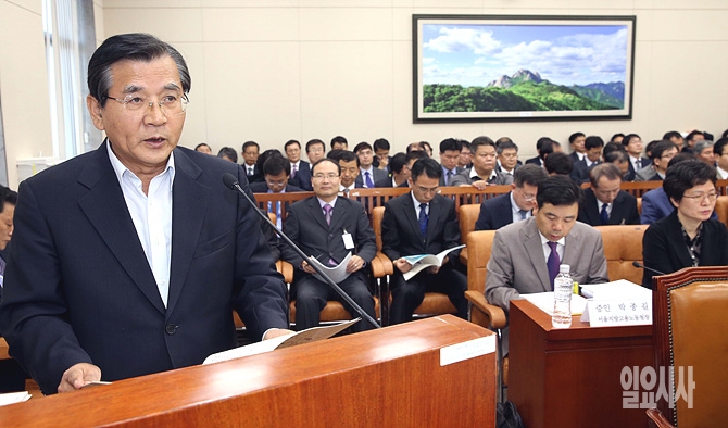 13일, 서울 여의도 국회 환경노동위원회 회의실에서 열린 2014 환노위 국정감사에서 김대환 노사정 위원장이 인사말을 하고 있다.