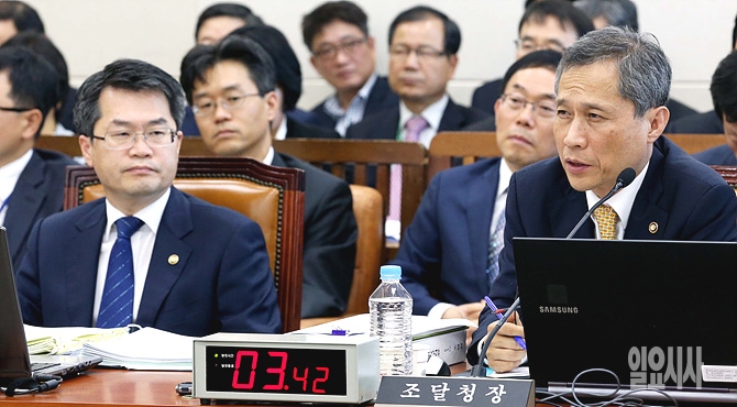 13일, 서울 여의도 국회 기획재정위원회 회의실에서 열린 2014 기재위 국정감사에서 김상규 조달청장이 의원들이 질의에 답변하고 있다.
