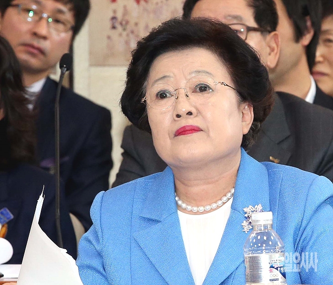 13일, 서울 여의도 국회 교육문화관광체육위원회 회의실에서 열린 2014 교문위 국정감사 직전, 이배용 한국학중앙연구원장이 의원들의 질의를 경청하고 있다.
