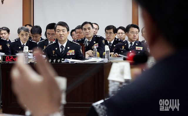강신명 경찰청장이 13일 서울 미근동 경찰청에서 열린 국회 안전행정위원회의 경찰청 국정감사에서 의원들의 질의를 경청하고 있다.