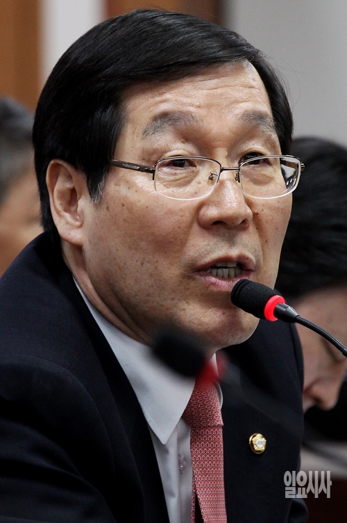 새누리당 김장실 의원이 13일 서울 미근동 경찰청에서 열린 국회 안전행정위원회의 경찰청 국정감사에서 강신명 경찰청장에게 질의하고 있다.
