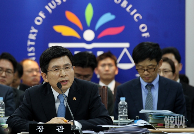 황교안 법무부 장관이 13일 경기 정부과천청사에서 열린 국회 법제사법위원회의 국정감사에서 의원들의 질의에 답하고 있다.