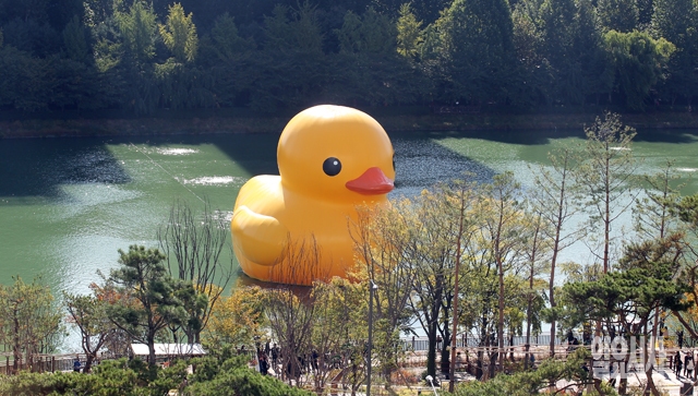 [포토] 석촌호수 러버덕 '두둥, 오리가 떴어요'