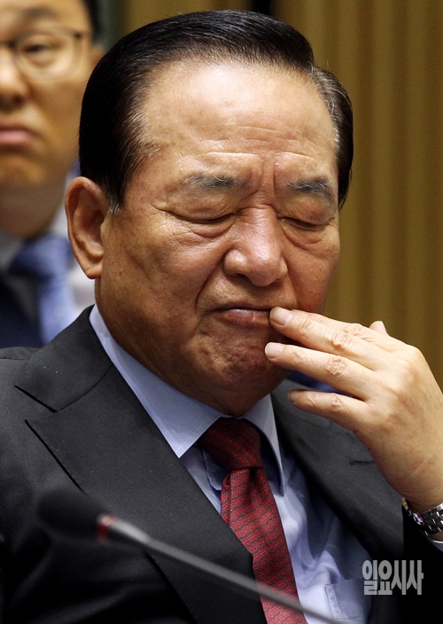 새누리당 서청원 의원이 14일 서울시청에서 열린 국회 안전행정위원회의 서울시 국정감사에서 생각에 잠겨 있다.