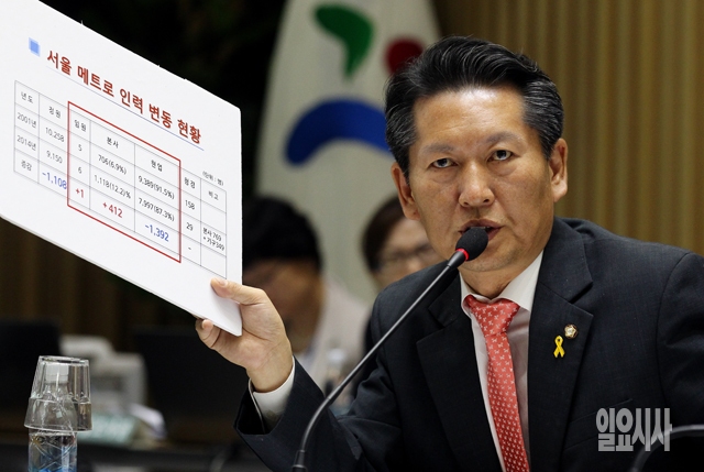 새정치민주연합 정청래 의원이 14일 서울시청에서 열린 국회 안전행정위원회의 서울시 국정감사에서 박원순 시장에게 질의하고 있다.