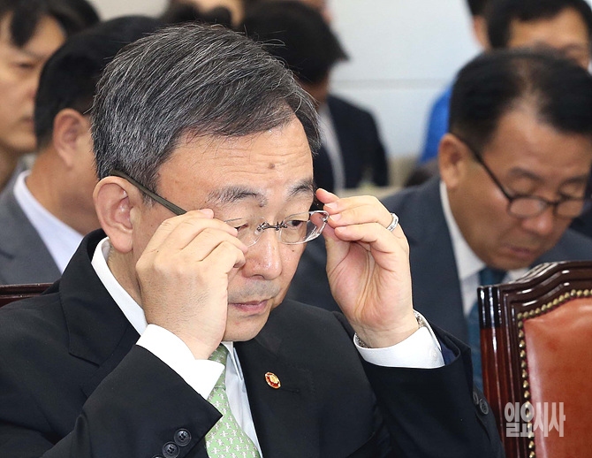 14일 오후, 서울 여의도 국회 미래창조과학위원회 회의실에서 열린 2014 국정감사 도중 최성준 방통위원장이 안경을 만지고 있다.