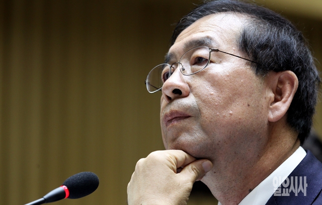 박원순 서울시장이 14일 서울시청에서 열린 국회 안전행정위원회의 서울시 국정감사에서 의원들의 질의를 경청하고 있다.