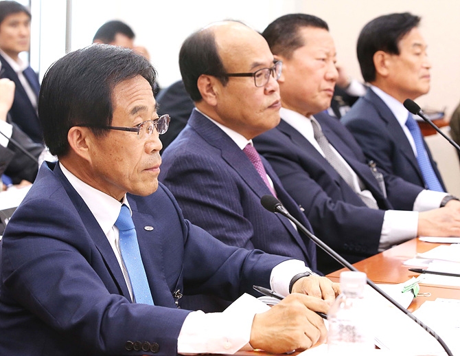 14일 오후, 서울 여의도 국회에서 열린 교육문화관광체육위원회 국정감사에 증인으로 이창섭 국민체육공단 이사장, 이병건 사행산업통합감독위원장, 김정행 대한체육회장, 서상기 국민생활체육회장이 출석해 있다.