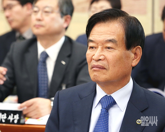 14일 오후, 서울 여의도 국회에서 열린 교육문화관광체육위원회 국정감사에 증인으로 서상기 국민생활체육회장이 출석해 질의를 듣고 있다.