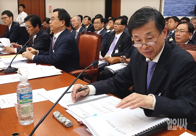 14일 오후, 서울 여의도 국회에서 열린 산업통상자원위원회 국정감사에 증인으로 강기창 한국가스기술공사 사장이 출석해 있다.