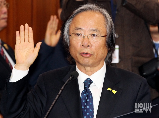 이주영 해양수산부 장관이 15일 서울 여의도 국회에서 열린 농림축산식품해양수산위원회의 국정감사에서 증인선서를 하고 있다.