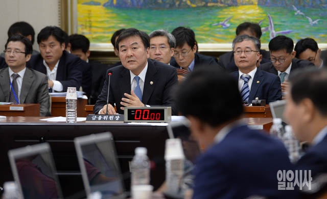 신제윤 금융위원장이 15일 서울 여의도 국회에서 열린 국회 정무위원회의 국정감사에서 의원들의 질의에 답하고 있다.