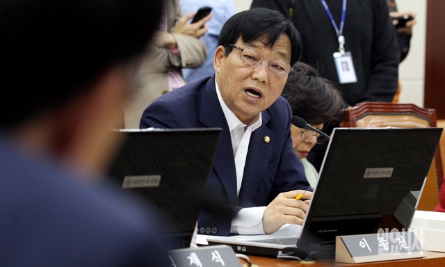 이종진 새누리당 의원이 16일 서울 여의도 국회에서 열린 보건복지위원회의 국정감사에서 김종대 국민건강보험공단 이사장에게 질의를 하고 있다.