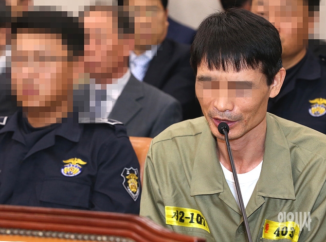 16일 오후, 서울 여의도 국회에서 열린 국회 농림축산식품해양수산위원회 국정감사에 이주영 해수부장관 및 세월호 승조원들이 증인으로 출석한 가운데, 한 승조원이 의원들의 질의에 답변하고 있다.