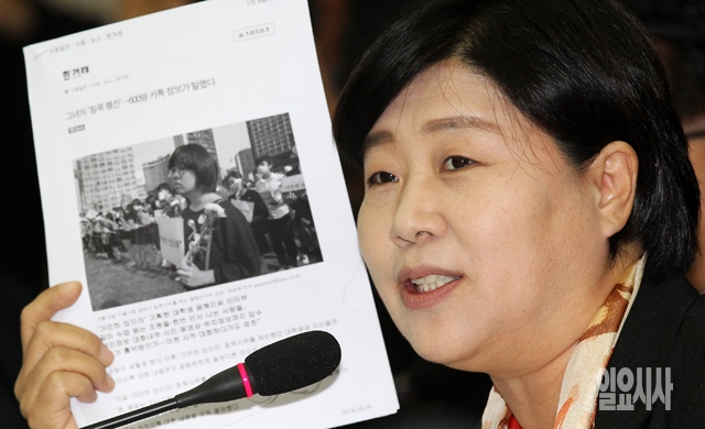 새정치민주연합 서영교 의원이 16일 서울 서초동 서울고등검찰청에서 열린 국회 법제사법위원회의 서울고등검찰청 등에 대한 국정감사에서 참고인 신분으로 출석한 이석우 다음카카오 공동대표에게 질의를 하고 있다.