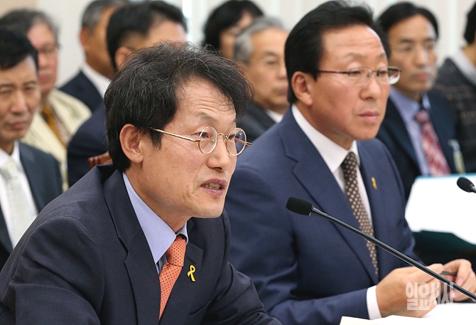 16일 오후, 서울 여의도 국회 교육문화체육관광위원회 회의실에서 열린 교문위 국감에서 증인으로 출석한 조희연 서울시 교육감이 의원들의 질의에 답변하고 있다.