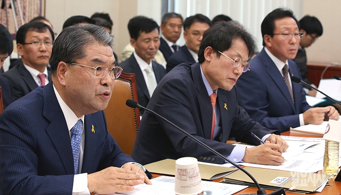 16일 오후, 서울 여의도 국회 교육문화체육관광위원회 회의실에서 열린 교문위 국감에서 증인으로 출석한 이재정 경기도 교육감이 의원들의 질의에 답변하고 있다.