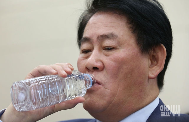 최경환 경제부총리 겸 기획재정부장관이 17일 서울 여의도 국회에서 열린 기획재정위원회의 국정감사에서 물을 마시고 있다.