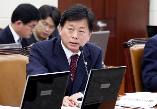 새누리당 김명연 의원이 17일 서울 여의도 국회에서 열린 보건복지위원회의 국정감사에서 최광 국민연금공단 이사장에게 질의를 하고 있다.