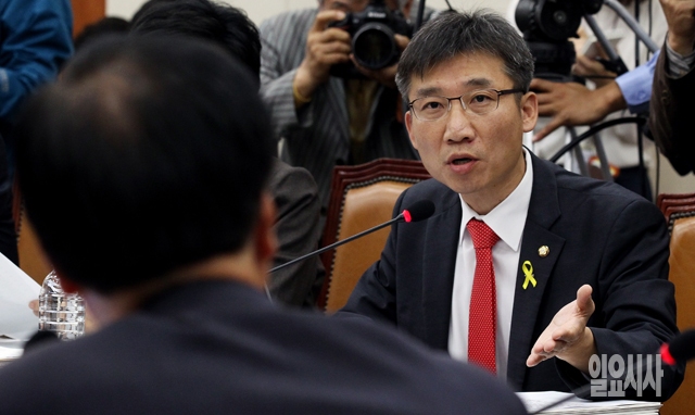 통합진보당 이상규 의원이 20일 서울 여의도 국회에서 열린 정무위원회의 국정감사에서 노대래 공정거래위원장에게 질의를 하고 있다.