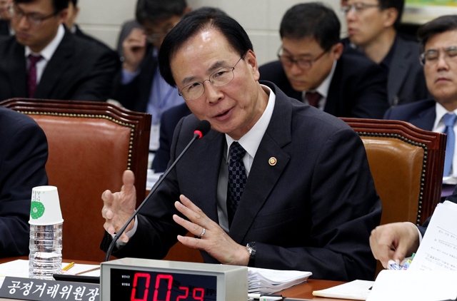 노대래 공정거래위원장이 20일 서울 여의도 국회에서 열린 정무위원회의 국정감사에서 의원들의 질의에 답하고 있다.