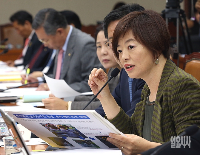 20일 오전, 진선미 새정치민주연합 의원이 서울 여의도 국회에서 열린 안전행정위 국정감사에서 질의하고 있다.
