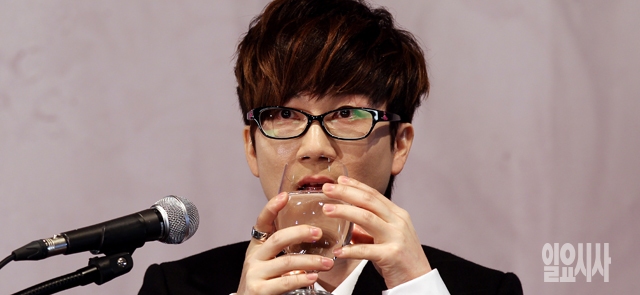 가수 서태지가 20일 서울 삼성동 그랜드인터컨티넨탈에서 열린 정규 9집 '콰이어트 나이트' 발매 기념 기자회견에서 물을 마시고 있다.