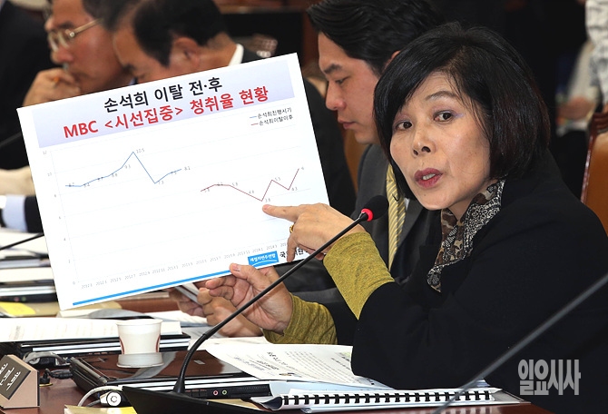 21일 오전, 서울 여의도 국회에서 열린 미래창조과학방송통신위원회 국정감사에서 최민희 새정치민주연합 의원이 질의하고 있다.