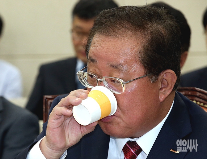 21일 오전, 서울 여의도 국회에서 열린 미래창조과학방송통신위원회 국정감사에서 한국방송광고진흥공사 곽성문 사장이 목이 타는 듯 물을 들이키고 있다.