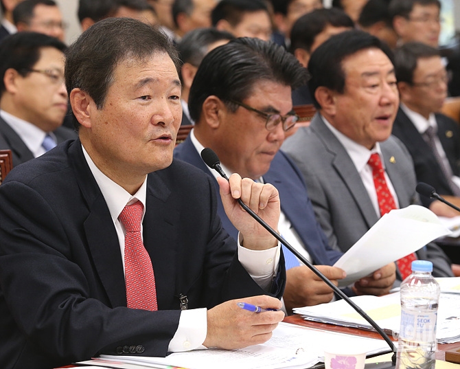 21일, 서울 여의도 국회 산업통상자원위원회 회의실에서 열린 산자부 국정감사에서 고정식 한국광물공사 사장이 의언들의 질의에 답변하고 있다.