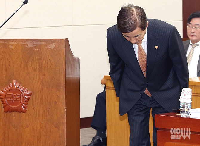 29일 서울 여의도 국회 국방위원회 회의실에서 열린 예산안 심의 전체회의 직전, 한민구 국방부장관이 의원들을 향해 인사하고 있다.