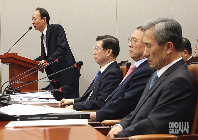 6일, 서울 여의도 국회 운영위원회 회의실에서 열린 예산안심사 전체회의에서 이재만 대통령실 총무비서관이 '헬스기구 논란'과 관련해 답변하고 있다.