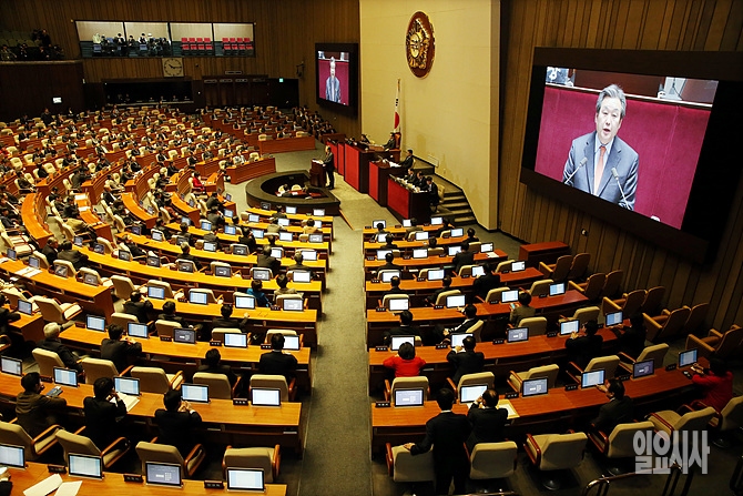 3일, 서울 여의도 국회 본회의장에서 새누리당 김무성 대표가 교섭단체 대표연설을 하고 있다.