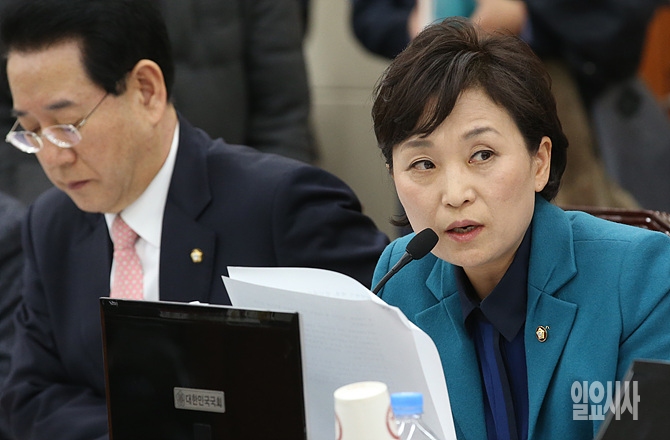 4일, 서울 여의도 국회에서 열린 연말정산 관련 긴급현안보고에서 새정치민주연합 김현미 의원이 최경환 경제부총리 겸 기획재정부장관에게 질의하고 있다.