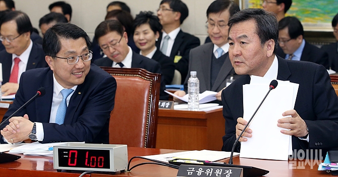 5일, 서울 여의도 국회에서 열린 정무위 전체회의에서 신제윤 금융위원장이 의원들의 질의를 듣고 있다.
