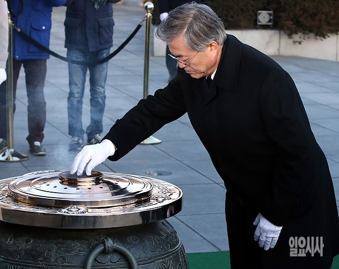 9일, 문재인 새정치민주연합 신임대표가 서울 동작구 국립묘지 참배 도중 분향을 하고 있다.