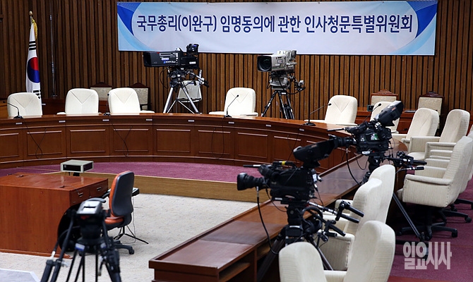 이완구 국무총리 후보자에 대한 인사청문회를 하루 앞둔 9일, 서울 여의도 국회 제3회의장에 인사청문회 방송을 위한 카메라들이 완벽히 세팅돼 있다.