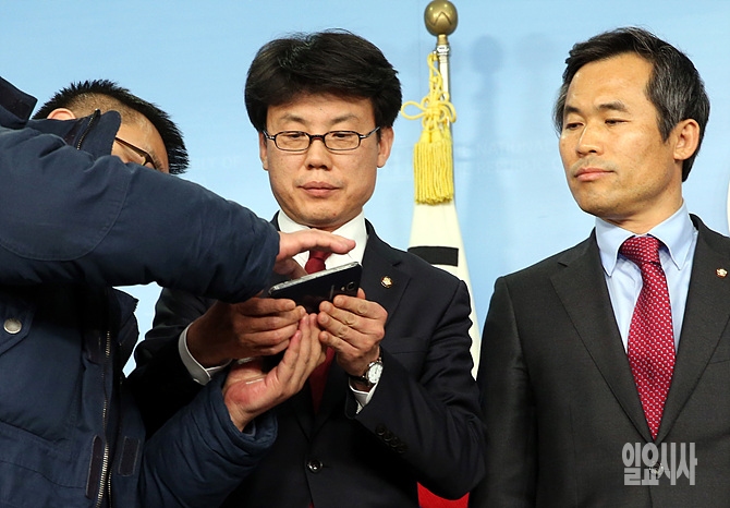 10일, 서울 여의도 국회 정론관에서 이완구 총리후보자 인사청문특위 진성준 의원이 '녹취록 관련' 긴급 브리핑 도중 녹취록을 공개하고 있다.