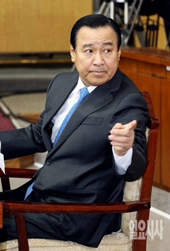이완구 국무총리 후보자가 11일 오전 서울 여의도 국회에서 열린 인사청문회에 참석해 청문회 진행에 앞서 국무총리실 관계자에게 자료를 요구하고 있다.