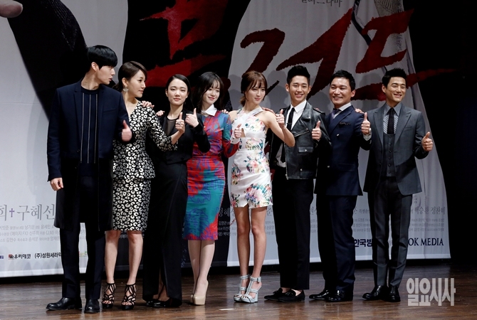 11일 오후 서초구 반포동 서울성모병원 성의회관에서 열린 KBS드라마 <블러드>(연출 기민수, 이재훈/극본 박재범) 제작보고회에서 출연진들이 포즈를 취하고 있다. 왼쪽부터 안재현, 진경, 손수현, 구혜선, 정혜성, 정해인, 조재윤, 지진희.