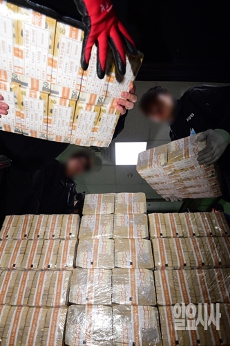 설을 일주일 앞둔 12일 오전 서울 중구 한국은행 본점에서 관계자들이 각 시중은행으로 보낼 설 자금을 이송차량으로 옮기고 있다.